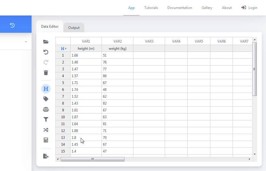 To compute a new variable, first click (Compute Variabel) button in the data editor toolbar and the Compute Variable dialog will appear. Specify your formula in the formula form. You can use your keyboard to type the variable name and mathematical logic, or you can select variable name and operator by clicking the available buttons. Use "space" or "enter" key as a separator between number, variable, and operator.